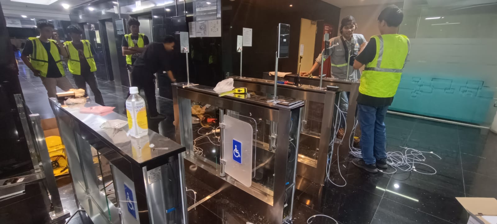 Dalam rangka meningkatkan sistem keamanan dan efisiensi kontrol akses karyawan serta tamu, kami dipercaya untuk melakukan instalasi swing gate otomatis yang terintegrasi dengan perangkat Face Recognition di area lobby Gedung BNI Graha Sucofindo. Proyek ini menggabungkan teknologi gerbang otomatis dan sistem identifikasi wajah (AI-based) untuk menciptakan pengalaman masuk yang lebih aman, cepat, dan tanpa sentuhan (contactless).