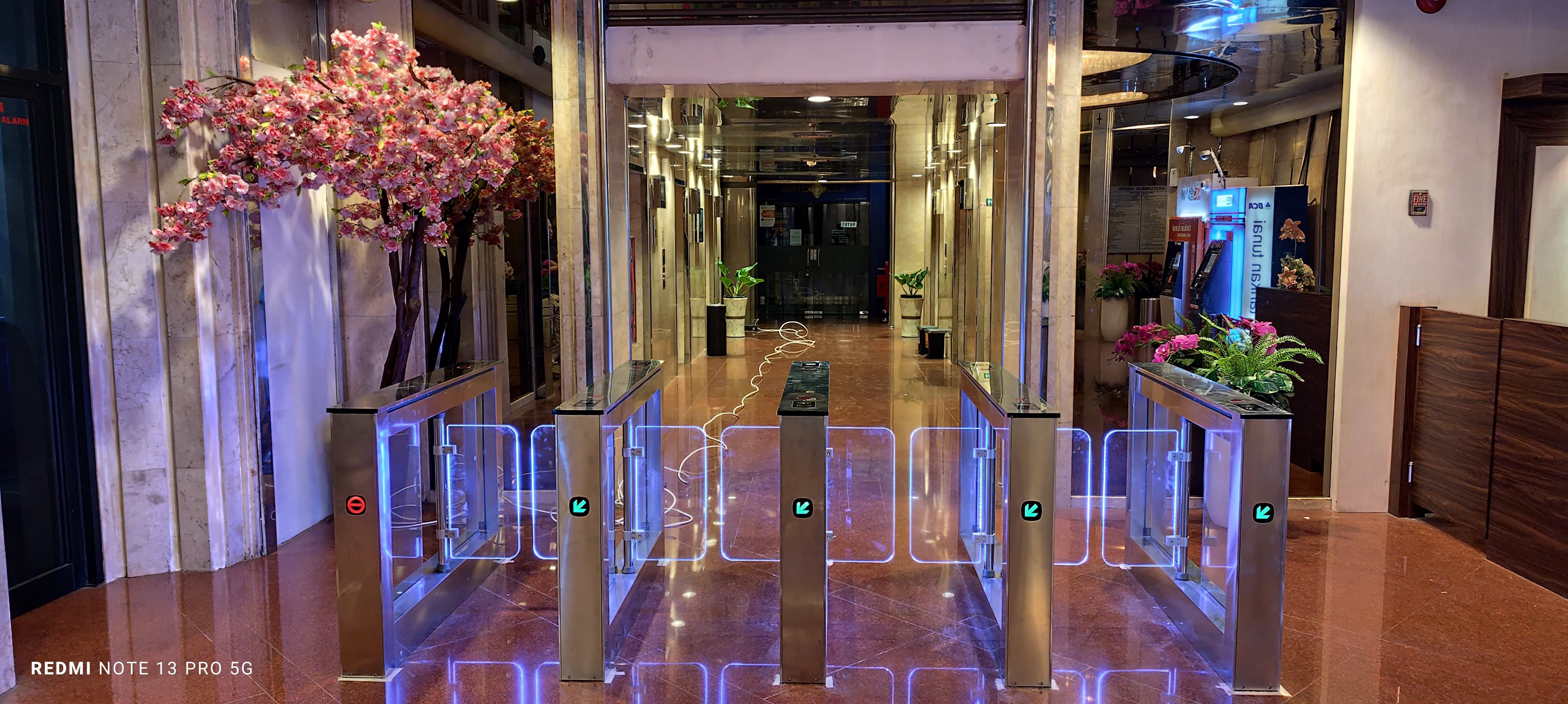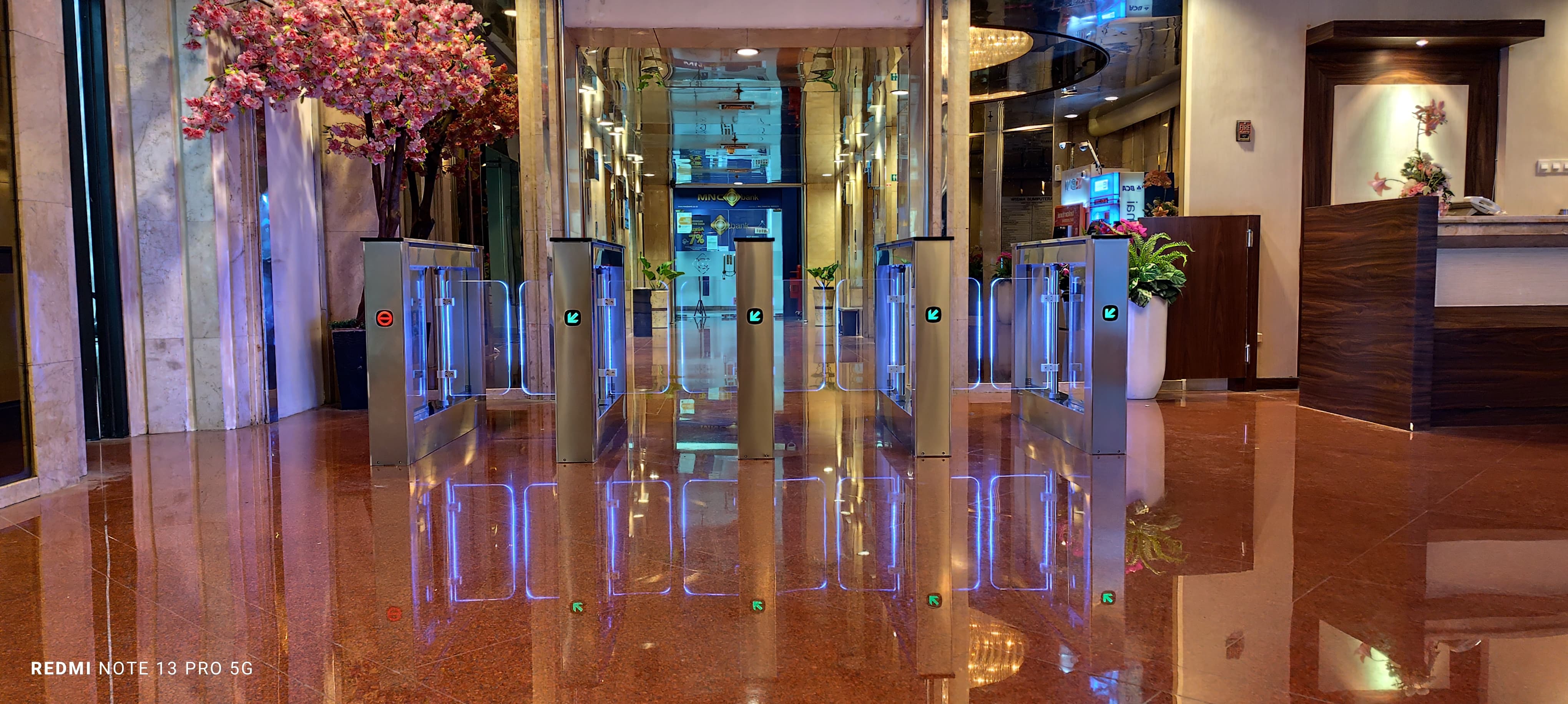 Gerbang berhasil diinstalasi dengan presisi dan performa optimal. Sistem berjalan stabil dengan bukaan yang halus dan responsif. Desainnya menyatu dengan konsep modern building Bumi Putra, memberikan kesan profesional dan meningkatkan standar keamanan gedung.